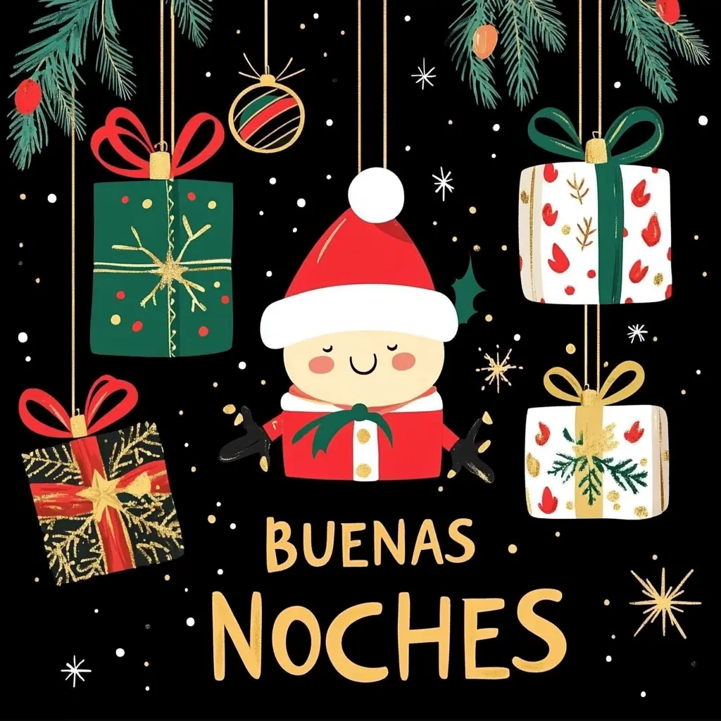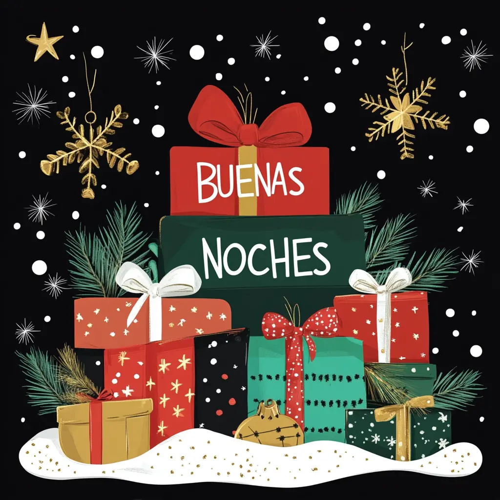 - «Que esta noche navideña te envuelva con su calidez y sus luces guíen tus sueños. ¡Buenas noches y feliz Navidad!»